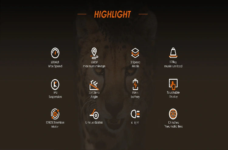 The KuKirin G3 is equipped with a robust four-arm shock absorption system, designed to effortlessly tackle any terrain. Featuring a bionic cheetah arm shock absorption design, it delivers a smooth, stable ride while combining cutting-edge engineering with modern aesthetics. Whether navigating rough roads or cruising through city streets, the G3 offers riders a reliable, safe, and comfortable experience every time.