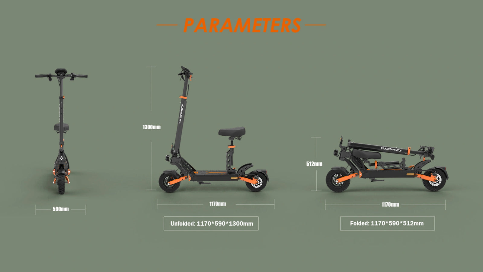 Frame SizePacking sizeExpend sizeFold sizeHandlebar sizePedal sizePedal to Handlebar sizeChassis heightSize1195*235*545mm(L*W*H)1170*590*1300mm(L*W*H)1170*590*512mm(L*W*H)590mm500*160mm(L*W)1010mm140mm