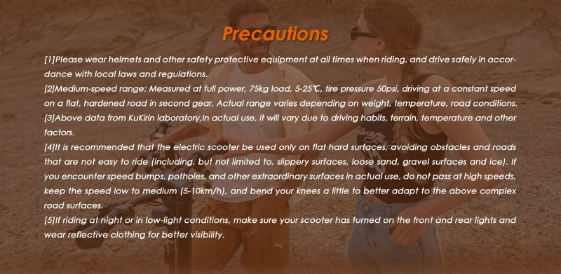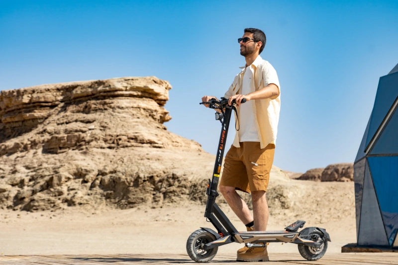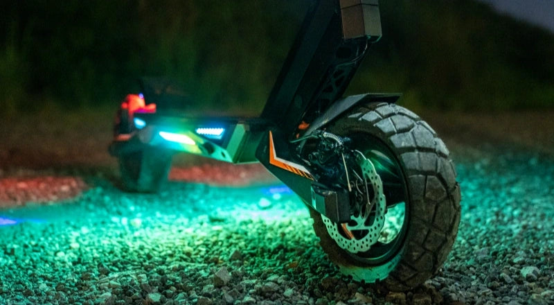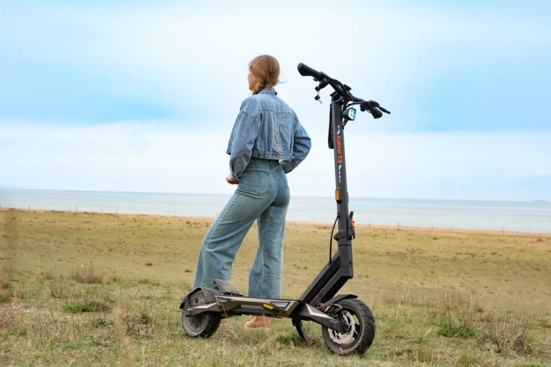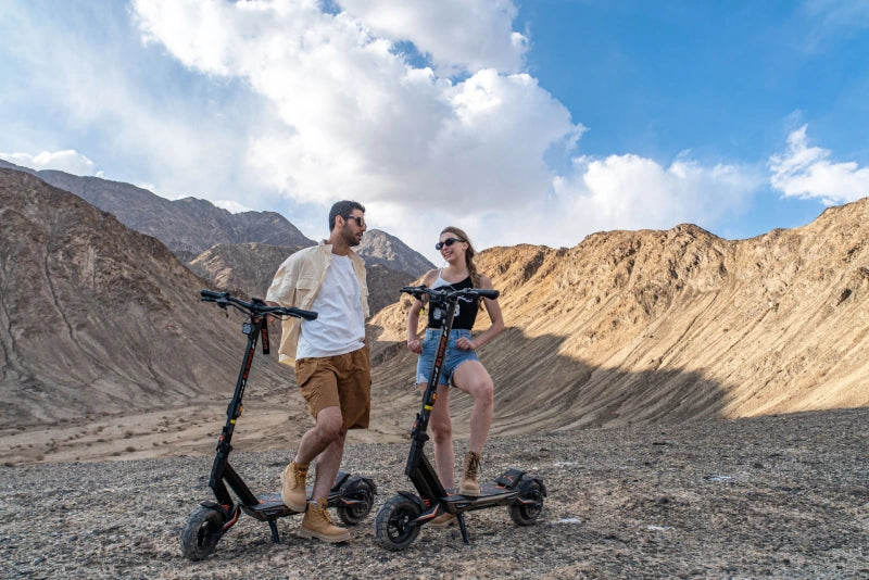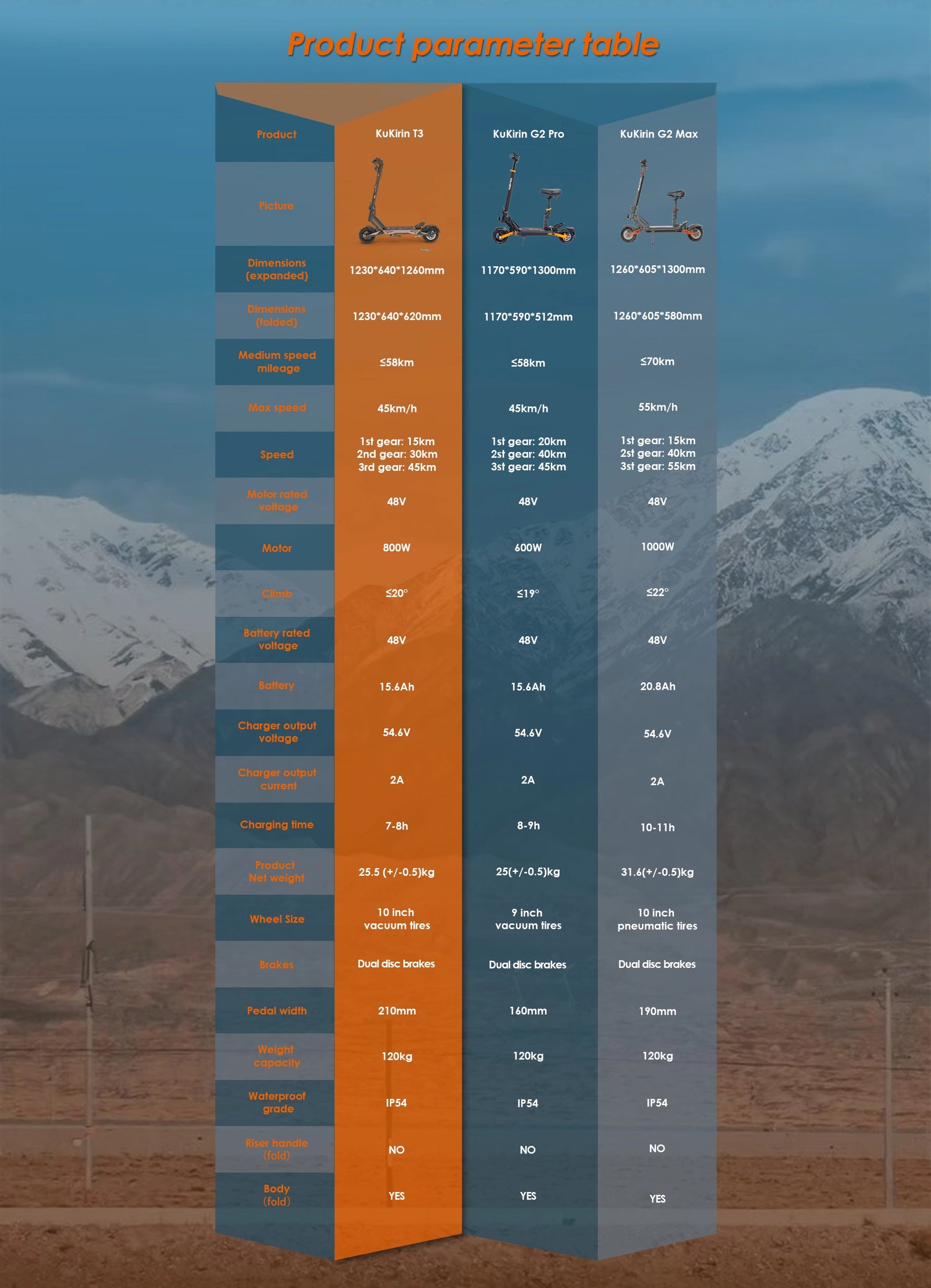The KuKirin T2 is equipped with 10-inch off-road vacuum tires and front and rear spring dampers, whose excellent grip and shock absorption ensure a smooth ride in all road conditions. The design of the vacuum tires reduces the risk of flat tires and increases driving safety and comfort. Whether it's on city tarmac or gravel trails in the countryside, the KuKirin T2 can handle it with ease, providing you with an unparalleled riding experience.