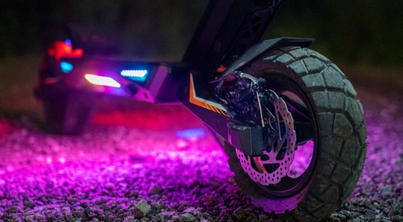 Beyond performance, the T3 stands out with its dynamic lighting design. The side RGB light strips support multiple modes including single-color glow, gradient flow, and breathing effects, allowing riders to express their personal style. At the rear, dual projection lights cast a unique blue “angel wings” pattern when illuminated, enhancing nighttime visibility while creating a signature visual identity on the road.