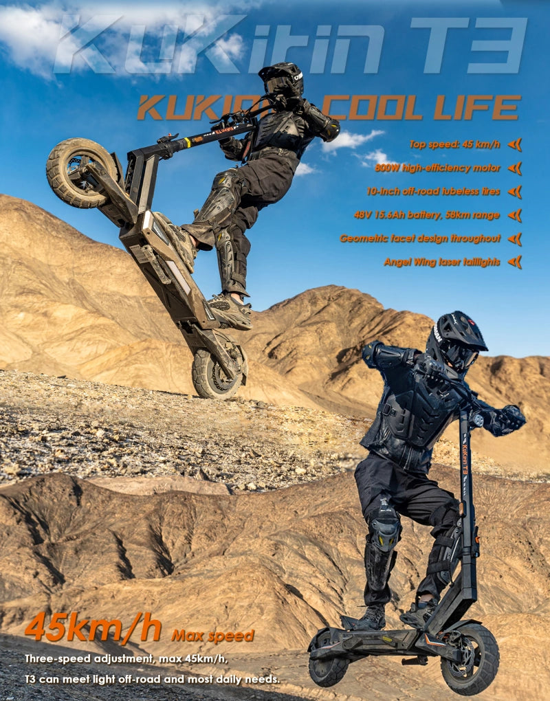 The KuKirin T3 is built for city riders who want both power and personality. Equipped with an 800W rear-drive motor, it delivers strong acceleration and stable climbing performance, easily handling daily commutes, campus travel, and short-distance urban trips. Paired with a 48V 15.6Ah battery, the T3 offers a tested range of up to 58 km and a top speed of 45 km/h—ideal for efficient and enjoyable everyday riding.