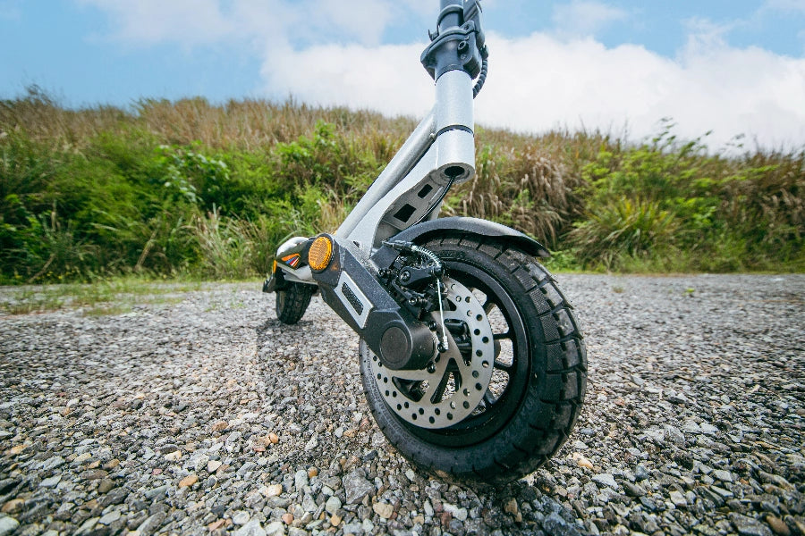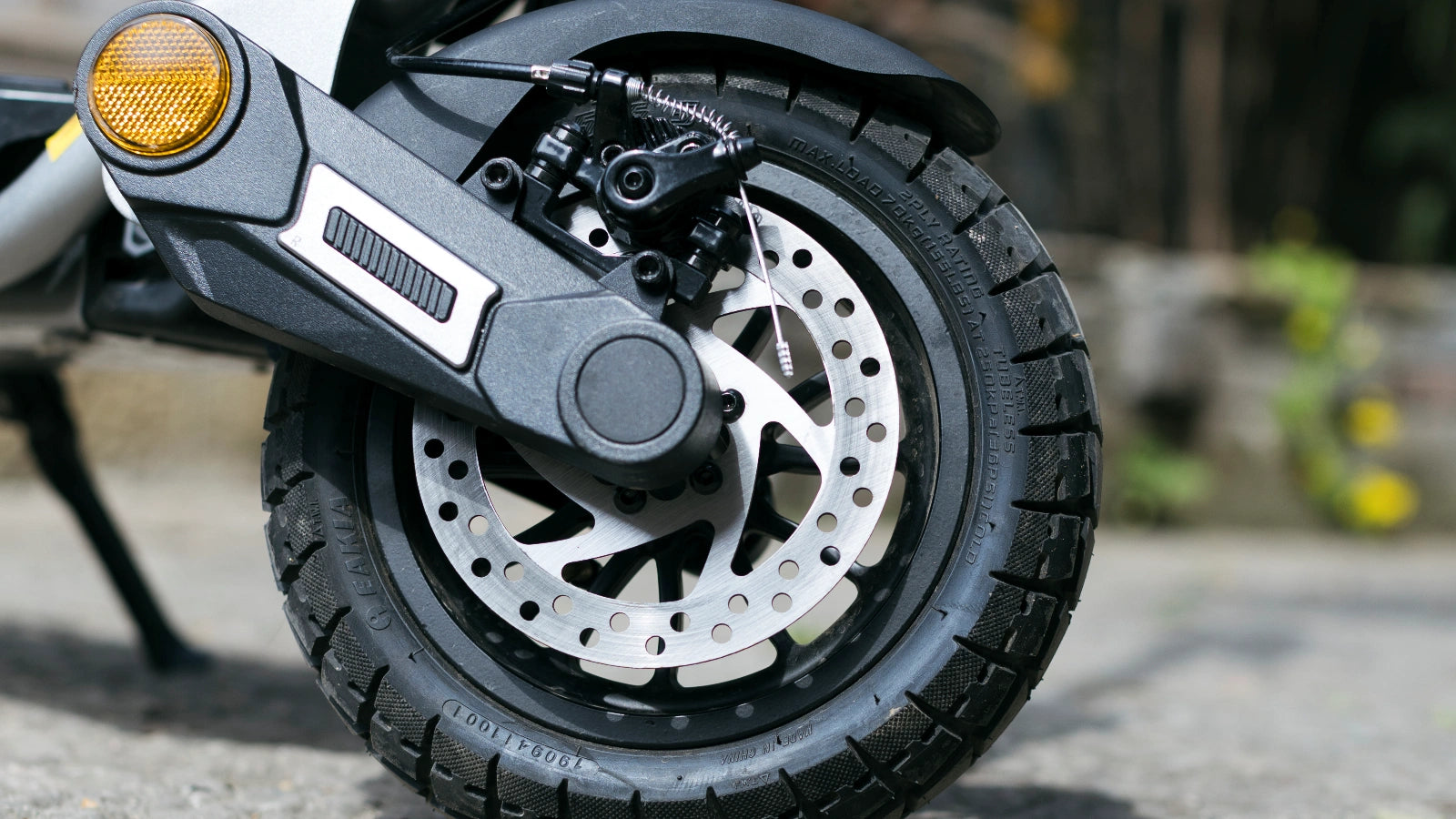 • The KuKirin A1 features a dual braking system with front and rear disc brakes combined with power-off braking. Even at top speeds, it delivers quick response and a braking distance of just 4–10 meters. Whether you're commuting through the city or cruising at higher speeds, it ensures stable, reliable stopping power, enhancing both your safety and riding confidence.